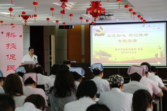 表彰大會結束後,院黨委書記葛丕為全體黨員做了主題為“不忘初(chū)心 牢(láo)記使命”的專題黨課,重溫中國共產黨不懈奮鬥的光輝曆程,傳承黨的優良傳統,展望(wàng)醫院發展的美好前景(jǐng)。