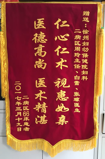 錦旗贈二病區周玲主任,白雪、張瓊醫生