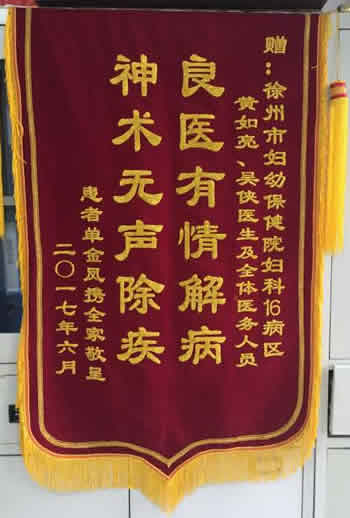 錦旗贈六病區孟慶勇主任及全體醫護人員