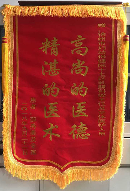 錦旗贈我院十七病區乳腺科梁興忠主任及全體醫護人員