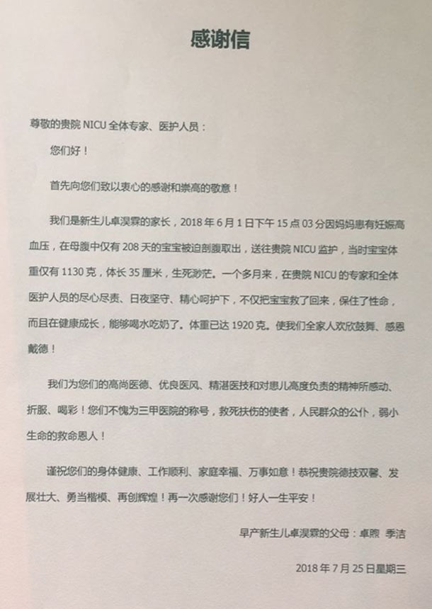 患者致(zhì)信感謝我院MICU全體專家、醫護人(rén)員