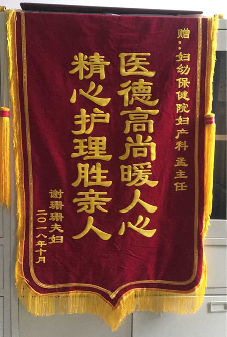 謝珊珊贈錦(jǐn)旗感謝我院產科孟(mèng)慶勇主任