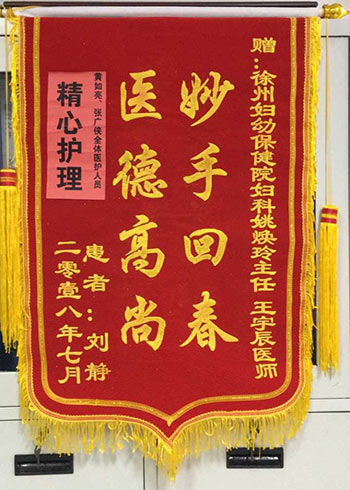 錦旗贈我院婦科姚煥玲主任(rèn) 王宇辰醫師
