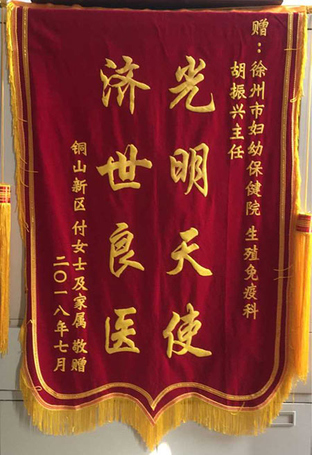 銅山區付女士贈錦旗感謝我院生殖免疫科胡振(zhèn)興主任醫師