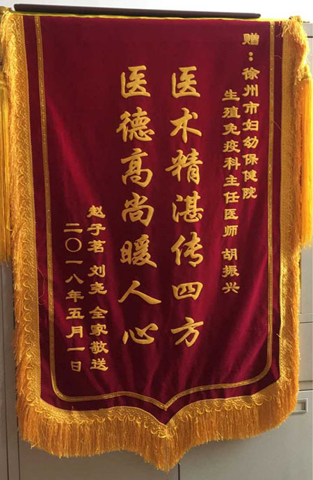 趙子茗贈錦旗感(gǎn)謝我院(yuàn)生殖免疫科胡振興主任醫(yī)師(shī)