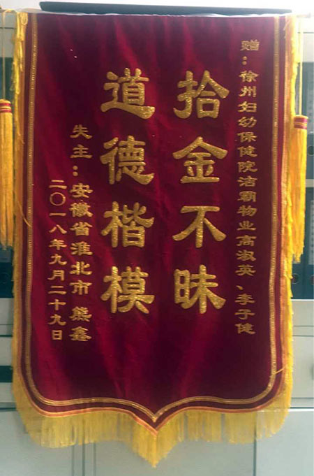 錦旗贈我院潔霸物業高淑(shū)英、李子健