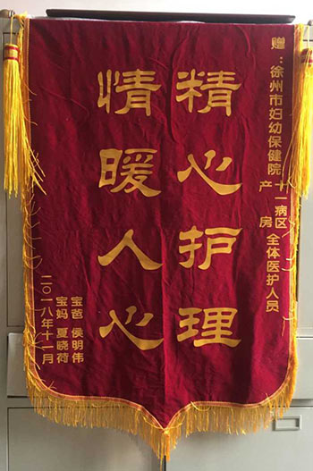 侯明偉攜家屬贈錦旗感謝我(wǒ)院十一病區、產房(fáng)全體醫護人員