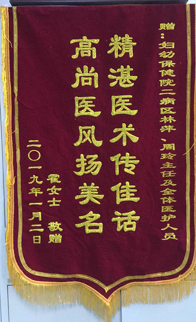 霍女士贈錦旗感謝(xiè)我(wǒ)院二病區林萍、周玲及全體醫護人員