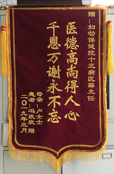 薛女士贈錦旗感謝我院生殖醫學中心陳瑜(yú)醫師及全體醫護人員