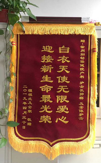 檀根蘭贈錦旗感謝我院產科郭梅及全體護士