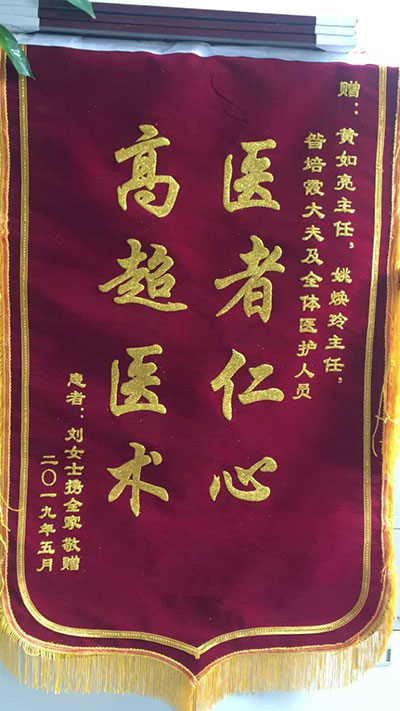 劉女士贈錦旗(qí)感謝(xiè)我院黃如亮、姚煥玲等及全體醫護人員