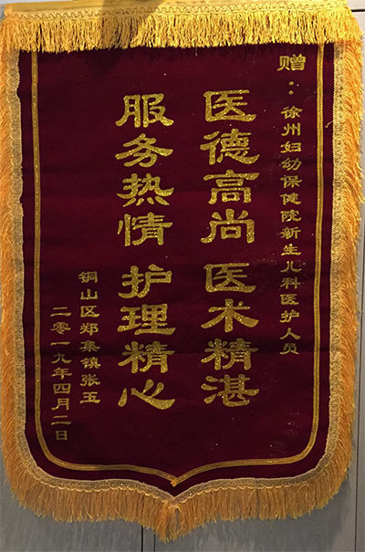 張玉贈錦旗感謝我院新生兒科全體醫護人員