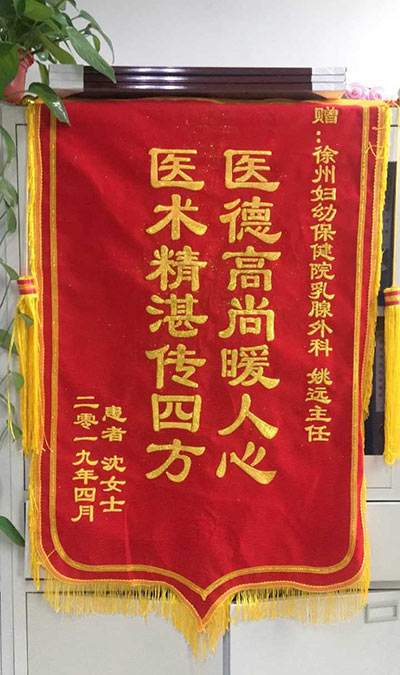 沈女士贈錦旗感謝我院乳腺外科姚(yáo)遠