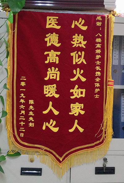 陳先生贈錦旗感謝我院高嬌及全體護士