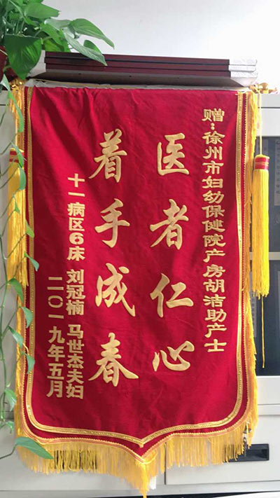 劉冠楠贈錦(jǐn)旗感謝我院產房胡潔