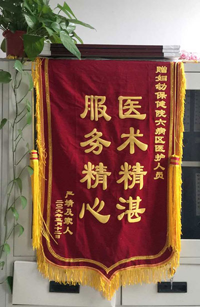 張女士贈錦旗感謝我院三病區梁麗、李青青及(jí)全體醫(yī)護人員