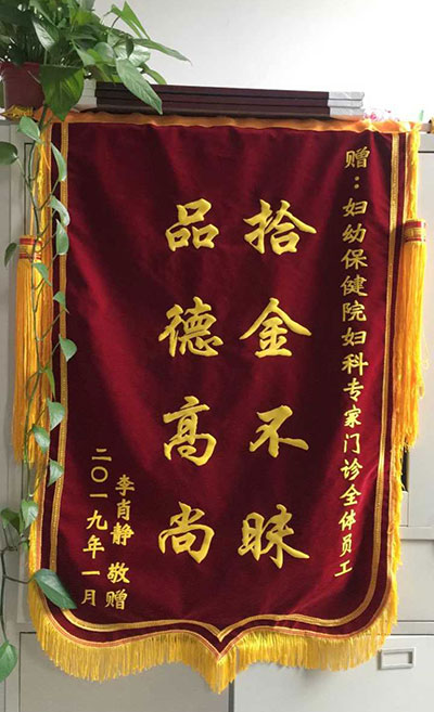 李肖靜贈錦旗感謝我(wǒ)院婦科(kē)專家門診全體員工