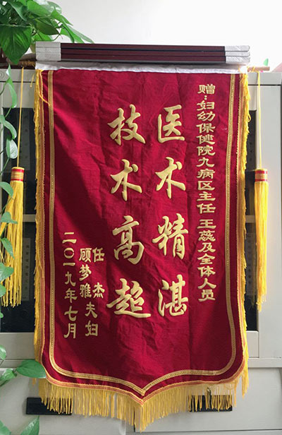 顧夢(mèng)雅贈錦旗(qí)感謝我(wǒ)院九病區王蕊及全體醫(yī)護人員