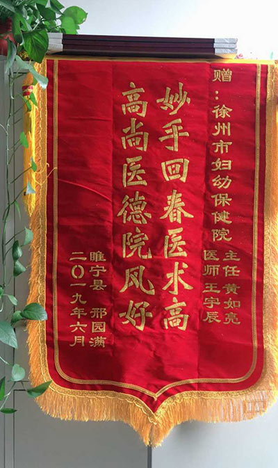 邢園滿贈(zèng)錦旗感謝我院黃如亮、王(wáng)宇(yǔ)辰