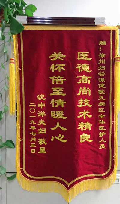 沈中洋贈錦旗感謝我院九病(bìng)區全體醫(yī)護人員