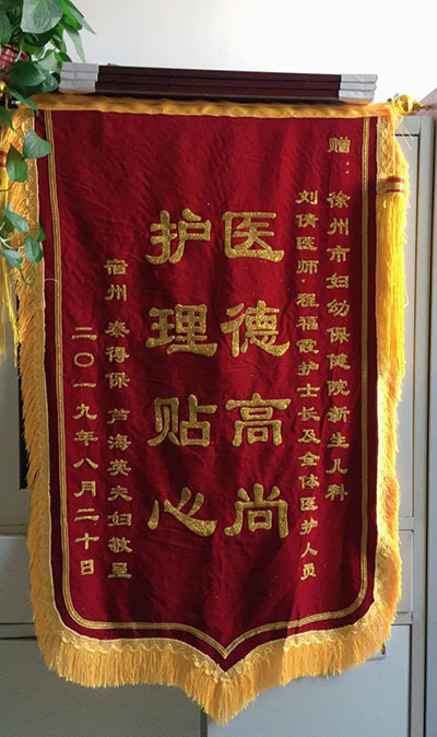 秦(qín)得保贈錦旗感謝我院新生兒科劉倩、程福霞及全體醫護人員(yuán)