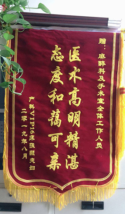 張(zhāng)顥贈錦旗感謝我院麻醉科(kē)手(shǒu)術室工作人員