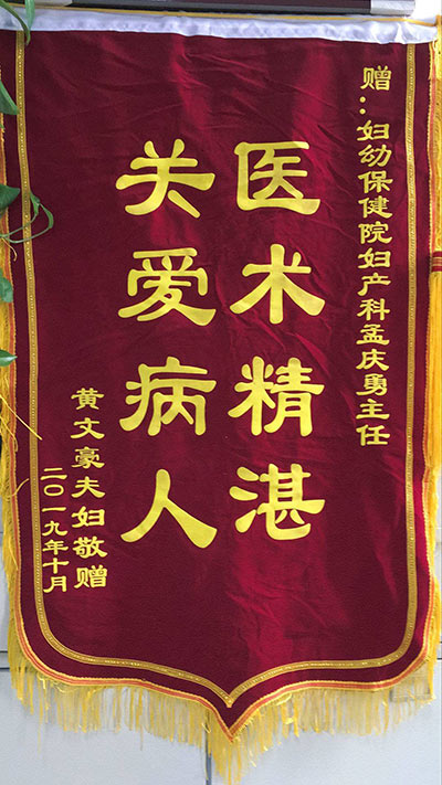 黃丈豪贈(zèng)錦旗感謝我院產科孟慶勇
