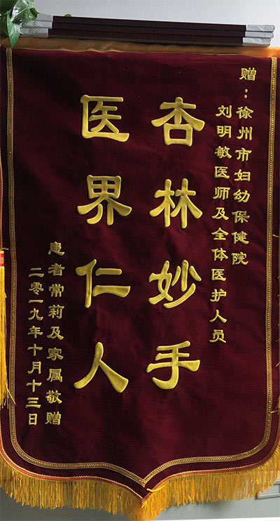 常莉贈錦旗感謝我院劉明敏及全體醫護人員