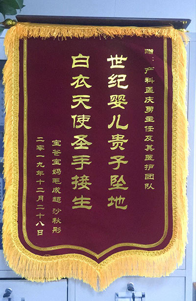 毛成超贈錦(jǐn)旗感謝我院產科孟慶勇