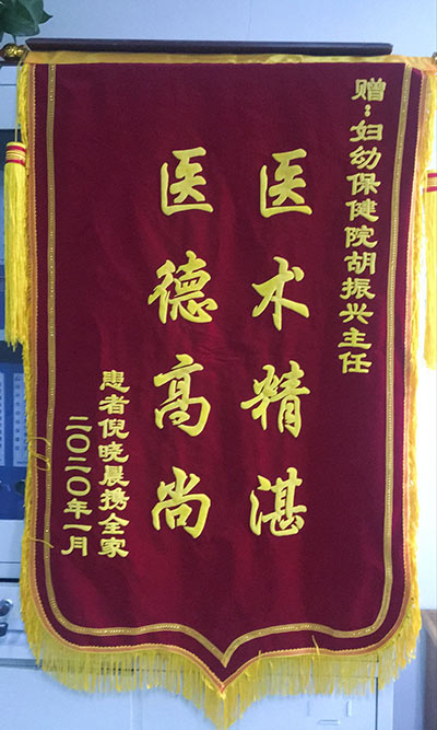 倪曉(xiǎo)晨贈錦旗感謝我院胡振興