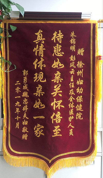 郭勇成(chéng)贈錦旗感謝我院朱錦明,彭鳳雲及全體(tǐ)醫護(hù)人員