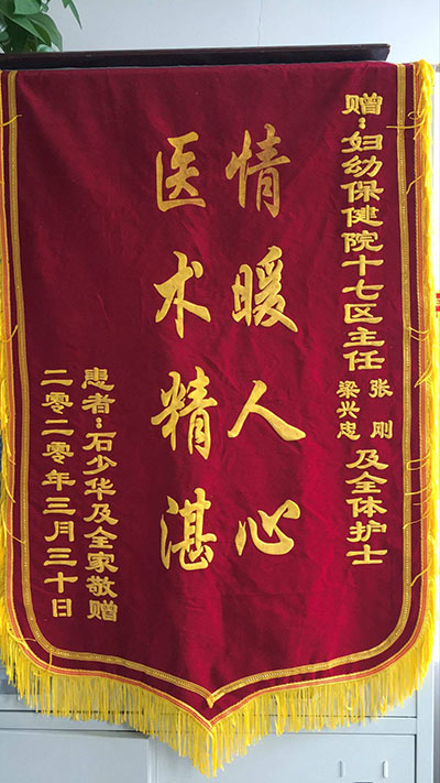 石(shí)少華贈錦旗感謝我院十七病區梁興忠、張剛及全體護士(shì)