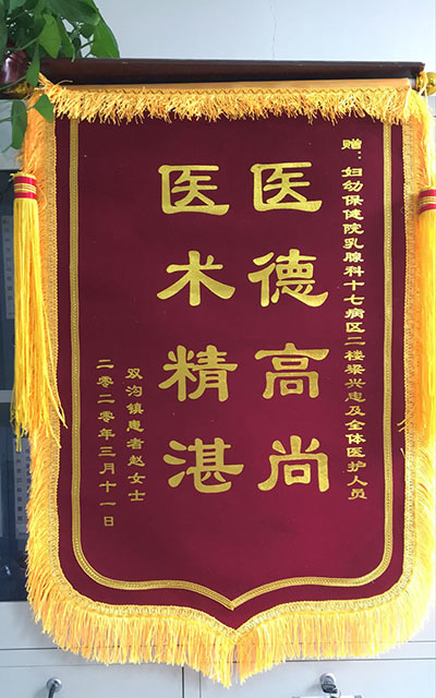 趙女士贈錦旗感謝我院乳腺科梁興忠及(jí)全體醫護人員