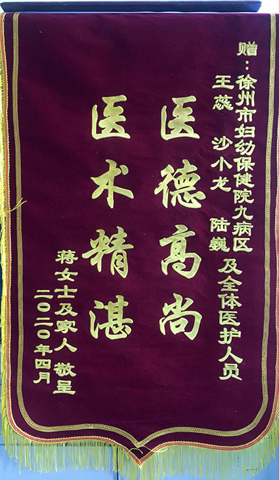 蔣女士贈錦旗感謝(xiè)我(wǒ)院九病區王蕊、沙(shā)小龍、陸巍(wēi)