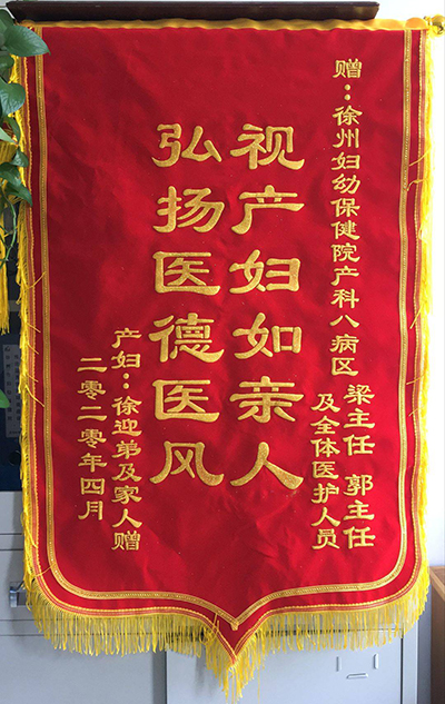 徐迎弟贈錦旗感謝我院八病區梁誌元(yuán)、郭秀香