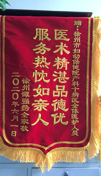 仇雨萌贈錦(jǐn)旗感謝我院產房全體醫護人員