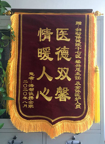 羅莉娟贈錦旗(qí)感謝我院朱錦明