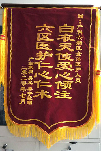 吳(wú)允贈錦旗感謝我院六(liù)病區全體醫護人員
