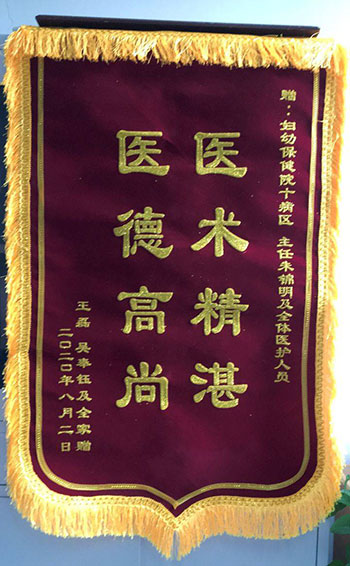 王磊贈(zèng)錦旗感謝我院十(shí)病區朱錦明及(jí)全體醫護人員