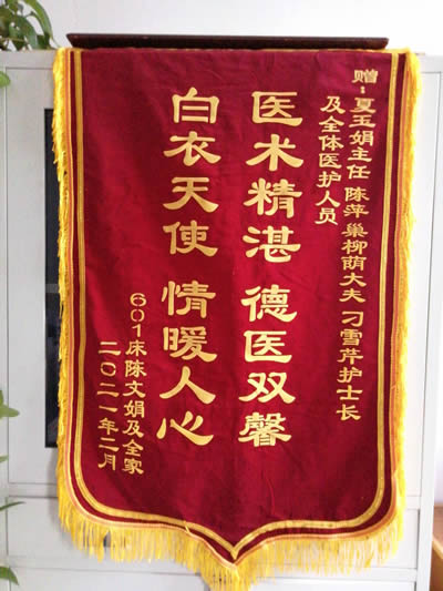 陳文娟(juān)贈錦旗(qí)感謝我院夏玉娟、陳萍、刁雪芹等