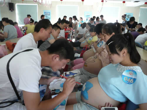 百名準媽媽在家人陪伴下參加了此(cǐ)次活動。在活動現場,孕媽咪露出驕(jiāo)傲的大肚皮做畫布,準爸爸們臨時扮演了(le)特約畫家(jiā)的角色,親手繪製一幅幅圖案,彩繪的內容大多為卡通的動物(wù)和花卉 。