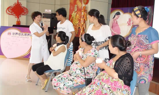 此次宣傳,市婦幼保健院緊扣(kòu)活動主題,在院內醒目位置張貼母乳喂養(yǎng)宣傳畫及宣傳標語,印發宣傳資料,舉(jǔ)辦(bàn)專題知識講座詳細介(jiè)紹母乳喂(wèi)養的好處,如:母乳的營養成分較完備,並且能隨著寶寶發育的需要(yào)相(xiàng)應地發生變化;母乳含有多量抗體,新生兒能從母(mǔ)乳中獲得免疫體;母乳的溫度宜於嬰兒食用,而且(qiě)清潔、新鮮,隨時可食(shí)用;產後哺乳還有(yǒu)助於產婦的子宮收縮,使子宮早日恢複正常(cháng)。活動現場,醫院保健(jiàn)部醫務人員為100多位準媽媽及家屬傳授母乳喂養知(zhī)識及喂(wèi)養技巧,不少準爸(bà)爸也紛紛上台(tái)參加模擬活動,體會母乳喂養的好(hǎo)處,使母乳喂養深入人心。