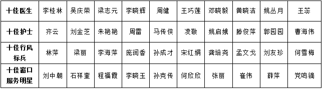 日前,市婦幼保健院“十佳醫生”、“十佳(jiā)護士”、“十佳行風標(biāo)兵”和(hé)“十佳窗口服務明星”評選揭曉,十五病區李桂林等10人獲評“十佳醫生”,二病區齊雲等10人獲評“十佳護士”,二病區林萍(píng)等(děng)10人獲評“十佳行風標(biāo)兵”,藥事科石祥奎等10人獲評“十佳窗口服務明星”。