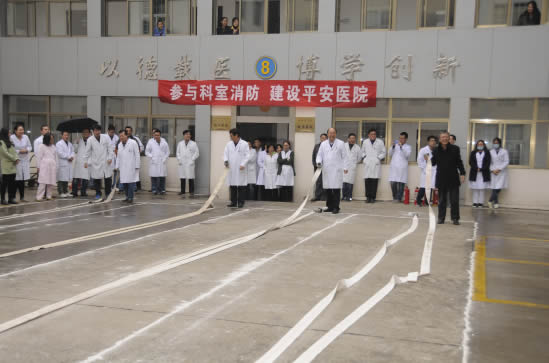 近日,我院舉辦“119”消防演練比(bǐ)賽活(huó)動。今年我院的(de)活動(dòng)主(zhǔ)題是“參與科室消防,建設平安醫院”。醫院特邀請市消防支隊科長徐剛,市衛計委(wěi)副主任楊軍、辦公(gōng)室(shì)副主任趙永平蒞臨現場觀摩演練。我院院領導班(bān)子陪同,全院130餘名職工參加比賽。