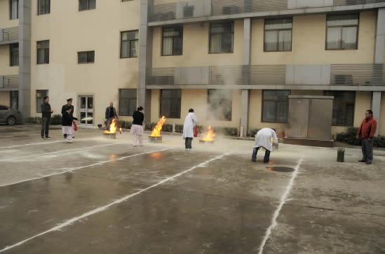保衛科工作(zuò)人員在現場準備四個火盆,並安排十幾名專業安保人員負責點火(huǒ)和應急(jí)消防,一百多名參賽選手4人一組進行比賽。院長黃大文、黨委書記葛丕、副院長黃勁磐、副(fù)院長王海艦作為第一組參賽選手冒雨親(qīn)自上陣參賽(sài)。4名選手拎著(zhe)4公斤重的(de)滅火器向火點跑去,成(chéng)功滅火。由於活動前期保衛科在全院(yuàn)做了大量的消防知(zhī)識培訓和宣傳(chuán)工作,參賽選手們都能熟練(liàn)、規範地進行操作迅速滅火。