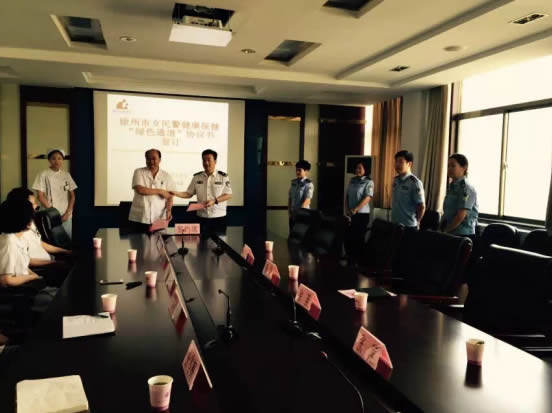 為給我市公安(ān)局女民警提供更方便、專(zhuān)業的醫(yī)療服務,最大限度地保障公安民警生命安全和身體健康,9月8日,我院與市公安局(jú)簽訂了女民警健康保健就診(zhěn)“綠色通道”協議書,簽約儀式在我院隆重舉行。院長黃大文攜醫院領導班子、及相關科室(shì)負責人出席儀式,市公安局政治(zhì)部主任高雷,及部分民警參加(jiā)了啟動儀式。
