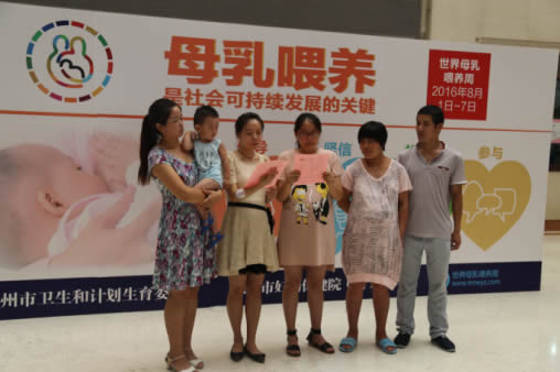 市衛計委對此項活動高度重視,並下發《關於開展“母乳喂養周(zhōu)”宣傳活動的通知》要求,我(wǒ)院(yuàn)遵循(xún)文件(jiàn)精神要求,及時部署相(xiàng)關工作,全麵落實母乳喂養的相關政策,製定了《徐州市婦幼保健院2016年母乳喂養宣傳周宣傳活動方案》。在(zài)母乳喂(wèi)養周期間聯(lián)合(hé)多部門圍繞活動主題開展形式多樣的宣傳活動,以鞏固愛嬰(yīng)醫院成果,營(yíng)造全社會愛嬰(yīng)愛母(mǔ)的良好氛圍。