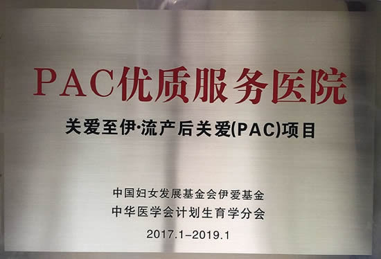 我院自2012年設(shè)立PAC服務,也是全國最早(zǎo)開展PAC服務的醫院(yuàn)之一。2016年12月經申報和綜合評估,獲得“PAC優質服務醫院”稱號,成為(wéi)徐州地區唯一一家開展PAC(流產後關愛)項目並獲此稱號的(de)醫院。