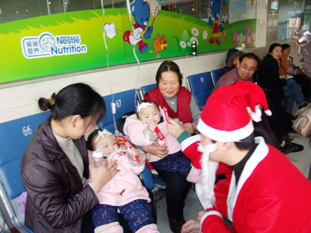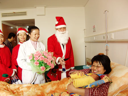 聖誕前夕,市婦(fù)幼保健院8名職工扮成聖誕老人向每一(yī)位在醫院出生的小寶寶送去一份禮物(wù)。這是我院連續三年(nián)堅持(chí)此舉措(cuò),深受廣大婦女兒童的歡迎。