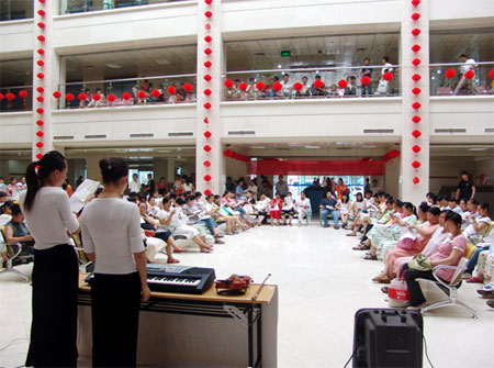 近年來,市婦(fù)幼保健院緊跟國(guó)際(jì)孕期(qī)保健(jiàn)新潮流,開展多種(zhǒng)形式適應孕期孕婦(fù)和胎(tāi)兒發育成長的(de)保(bǎo)健活動。如組織孕婦賞花、舉辦孕婦時裝秀、孕婦肚皮彩繪、孕婦音樂(lè)欣賞(shǎng)、孕期心理調適和營養指導等,受到廣大孕婦歡迎。圖為今年7月14日在(zài)門診大廳再次舉辦“準媽媽音樂課堂”。